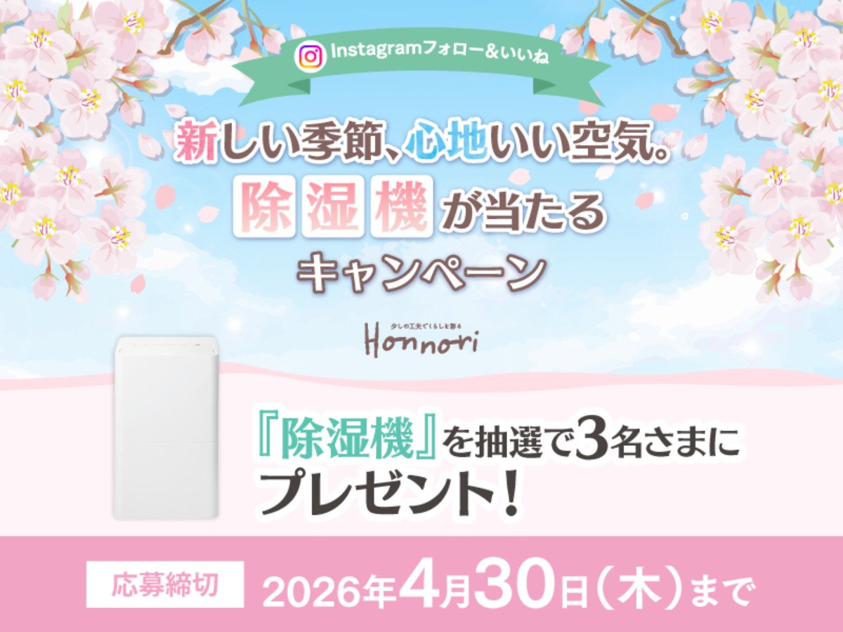 【フジ】4月17日(金)~4月30日(木) 『Instagram企画』新しい季節、心地いい空気。除湿機が当たるキャンペーン