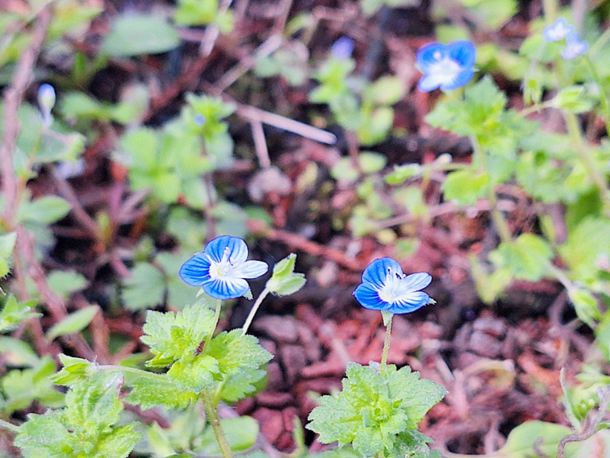 青色の可愛らしい小さな花に出会えて、心がほっこり癒されました。