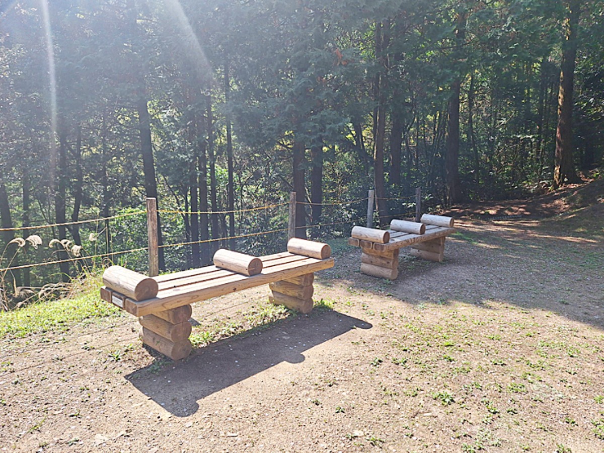 広場内には、各所にベンチが設置されています。こまめな水分補給や、ちょっとした休憩にも便利です。
