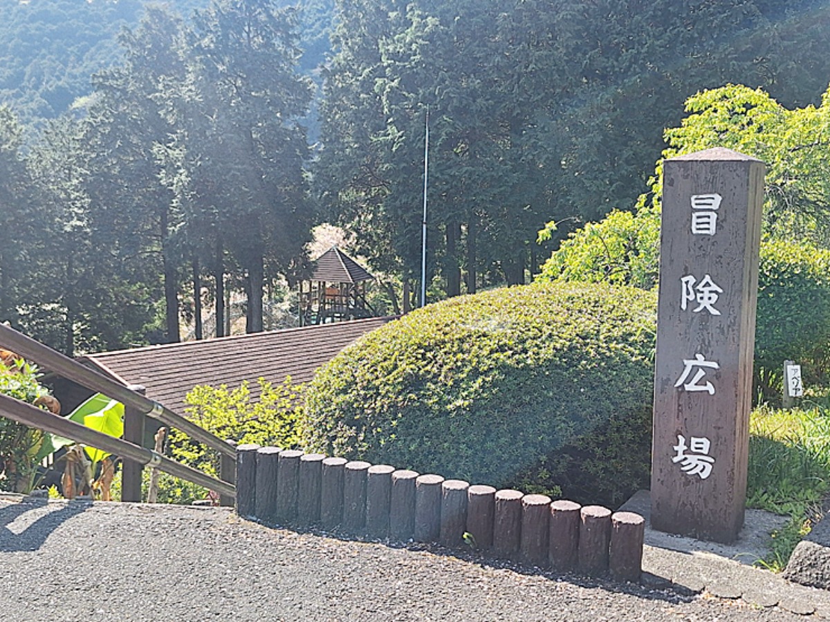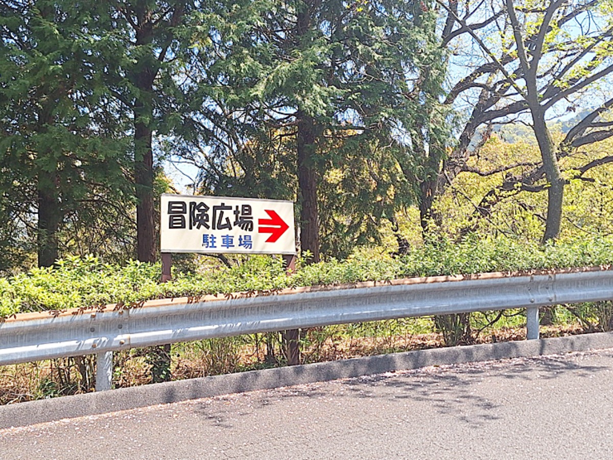 ここから「冒険広場」までは山道が続くので、安全運転でゆっくりと進んでくださいね。