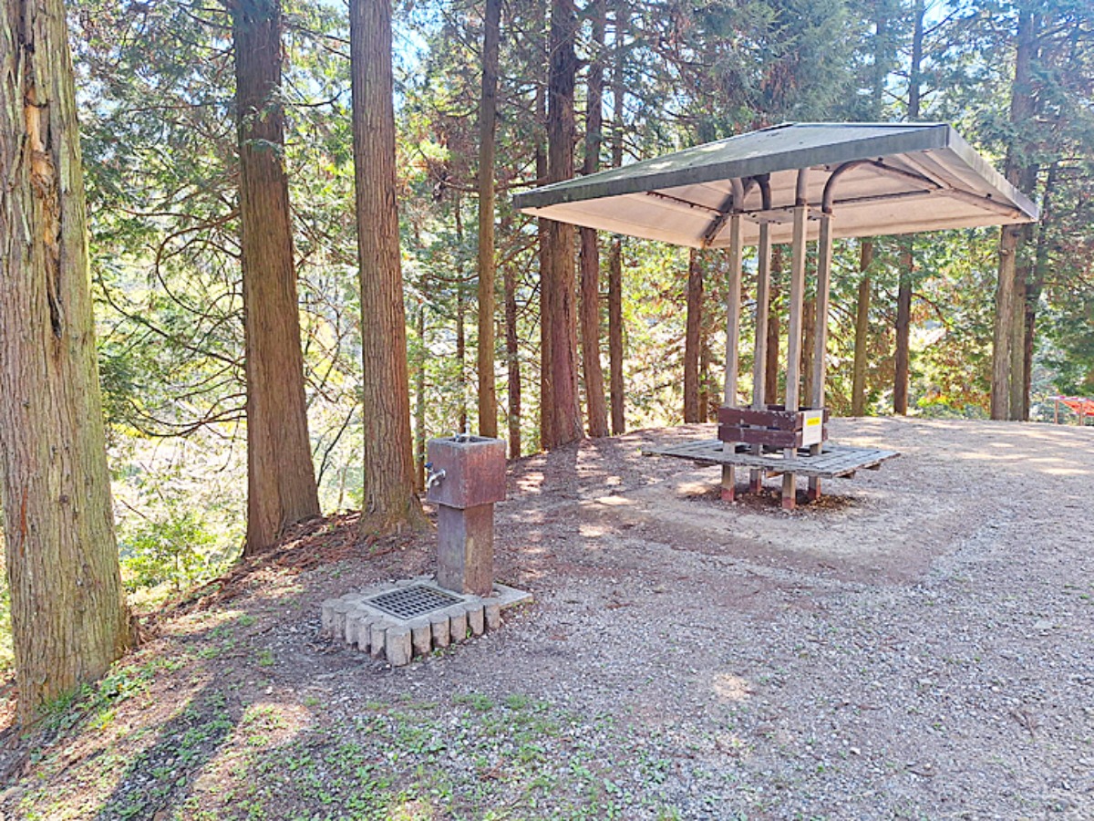 ローラーすべり台の降り口付近には、水道と休憩所が設置されています。