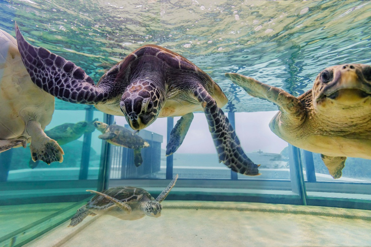 「SATOUMI」では、高知県沿岸に生息する“海の宝石”と呼ばれるウミウシと、竜串湾を遊覧するグラスボートからも見られるウミガメを展示。そのウミガメたちが空を泳いでいるように見える水槽もSNSで話題!