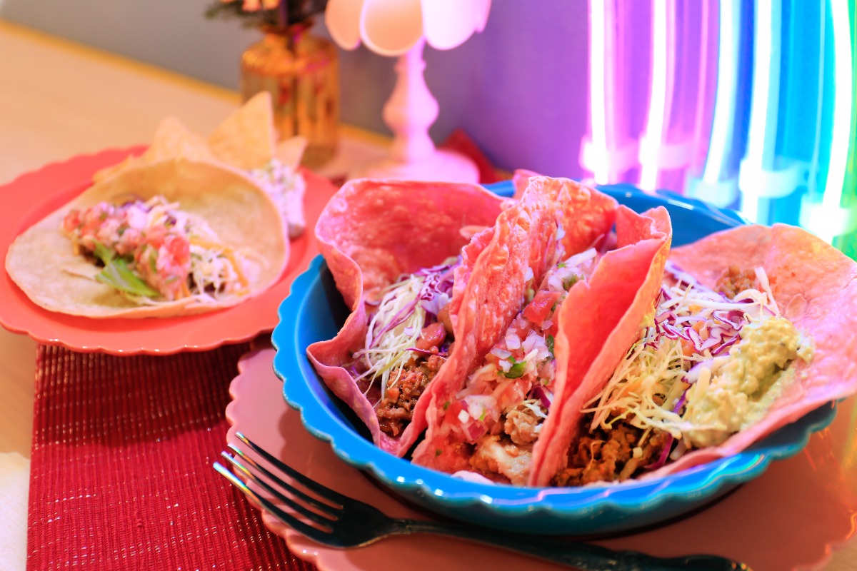 1月24日にオープンした姉妹店「VICKY’S TACOS」では、「banabee」のバナナジュースはもちろん、スーパーフード“ビーツ”を使ったピンク生地の新定番メニュー「タコス」が大人気! POPで可愛い装飾が彩る店内でゆったり過ごしてみて♪